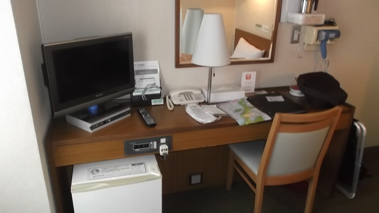 福井駅東口徒歩1分(目の前)、駅構内にコンビニや食事処が、またはAOSSAでも食事ができ大変利便性が高い。フロントマンはフレンドリーで9.1㎡の客室へ。一人旅には十分なスペースでWIFIあり。バス・トイレ・洗面はユニット式で狭いものの洗浄便座にウォッシュレット完備。