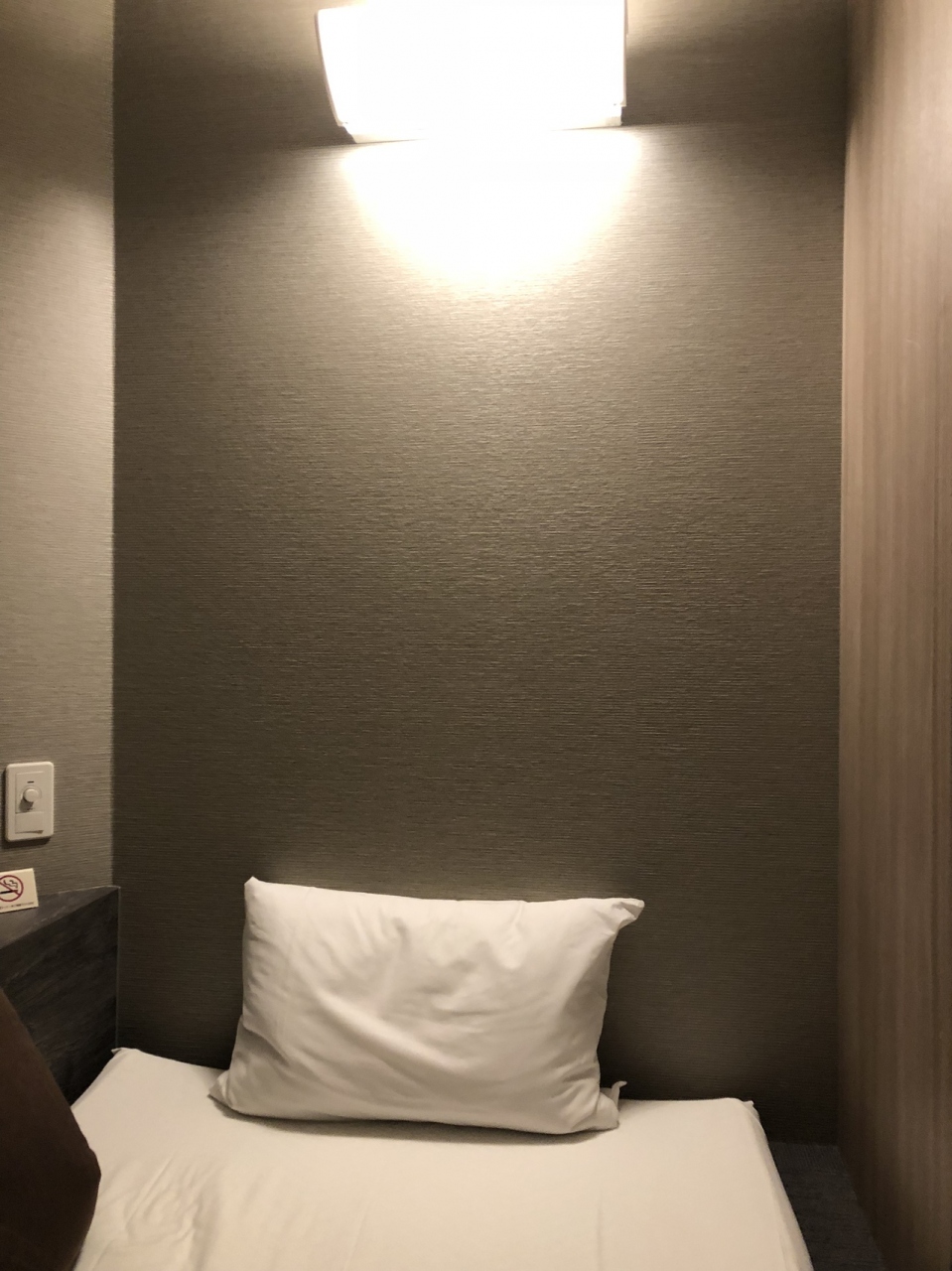 久々にカプセルホテルを利用しました。こちらは一室が2段に分かれたタイプと一段タイプが選べます。料金は少し高くなりましたが一段タイプの部屋を選び、天井が高くて高さの圧迫感はありませんでした。とても清潔でカプセルホテルも進化したなと思いました。