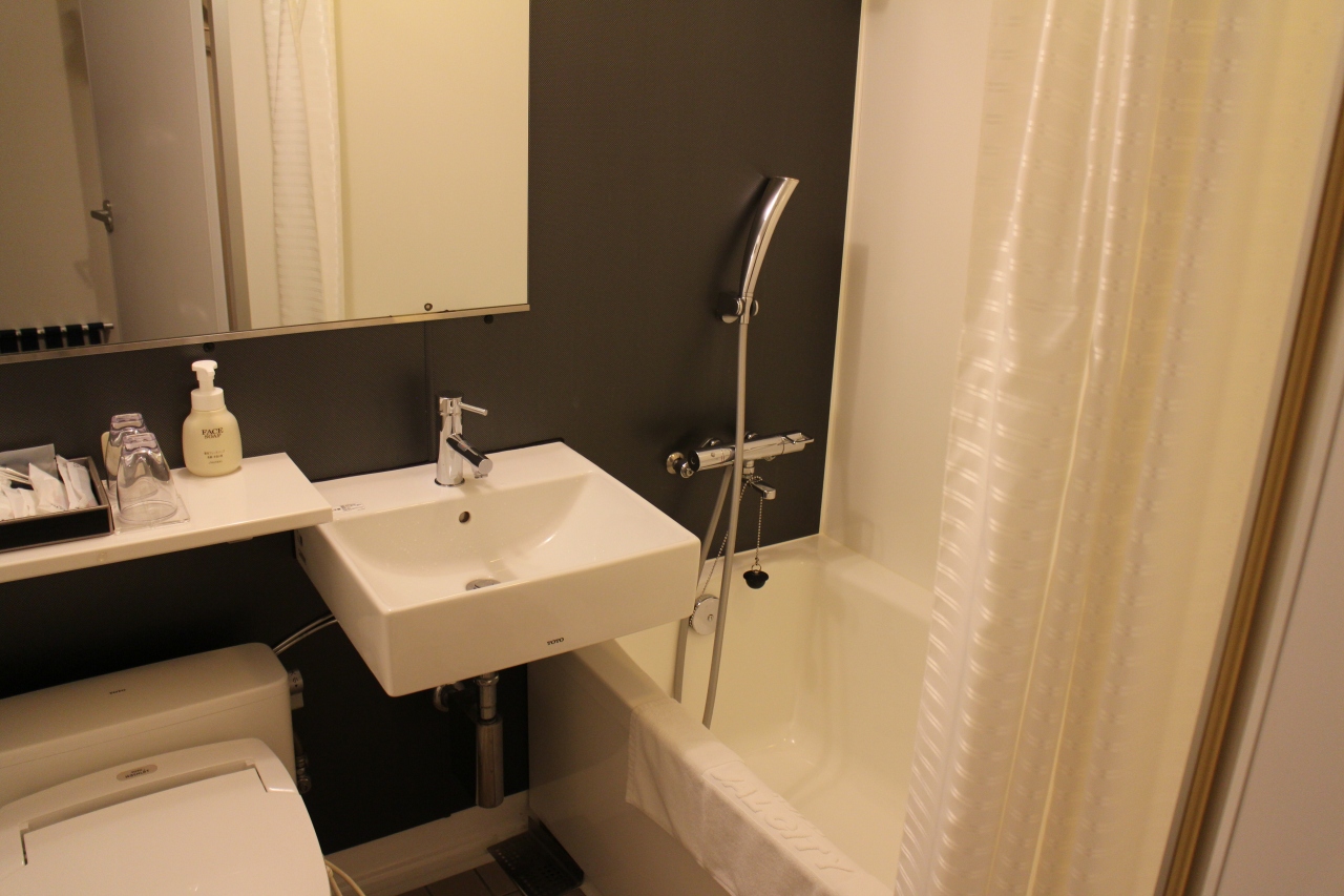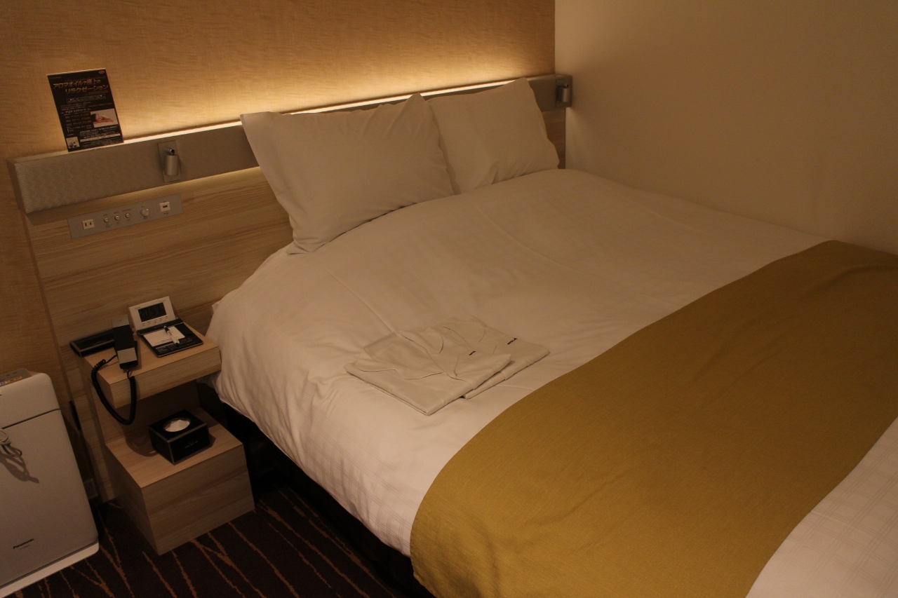予約はホテルのHPから。禁煙のスタンダードシングル、朝食付きで予約。当日は広めのダブルにアップグレード。中層階で、外の景色は楽しめないが、やはり広い部屋はそれなりにゆっくりできる。調度品も落ち着いた雰囲気。バスルームも広めで快適。