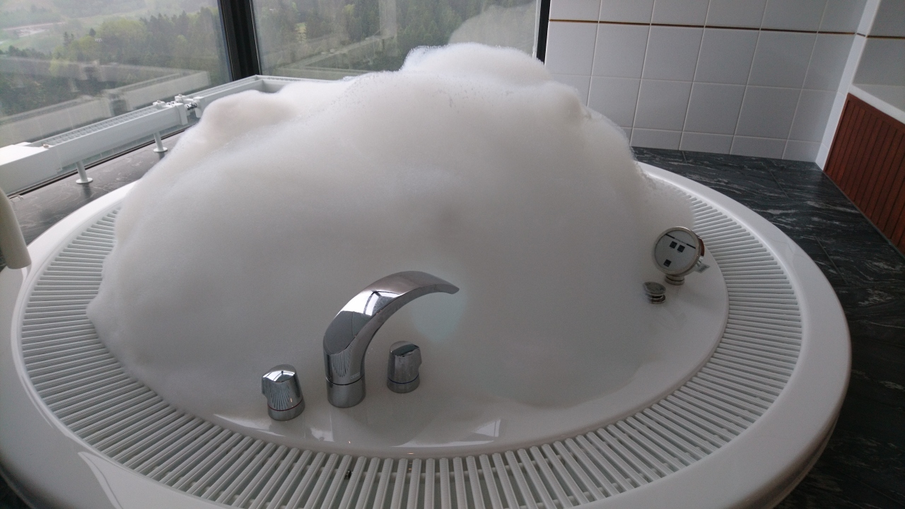 トマムと言えば雲海。雲海テラスでお茶など、雄大な自然を満喫できます。その雲海が、部屋に再現されました。雲が浮かんだ部屋に泡で雲を表現したバスルーム。とてもメルヘンチックな気分になれました。朝は、もちろん雲海を見にテラスへ。帰ってきて、またお不利に入り、外でも部屋でも雲海を楽しめました。