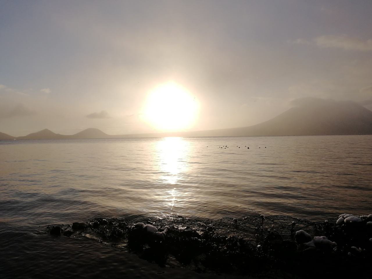 湖側の部屋からは支笏湖と樽前山がよく見えます。朝は支笏湖の向こうから日が昇るので、天気が良ければ日の出も楽しめます。