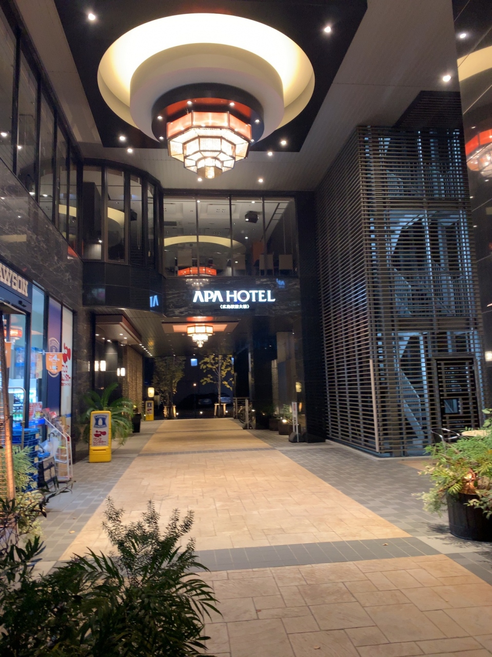 広島駅から徒歩10分弱。リゾートホテルのような外観のアパホテルです。部屋はそれほど広くありませんが、綺麗です。1階にはコンビニもあります。入り口が何カ所もあるのが便利でした。フロントの対応も非常に良いです。