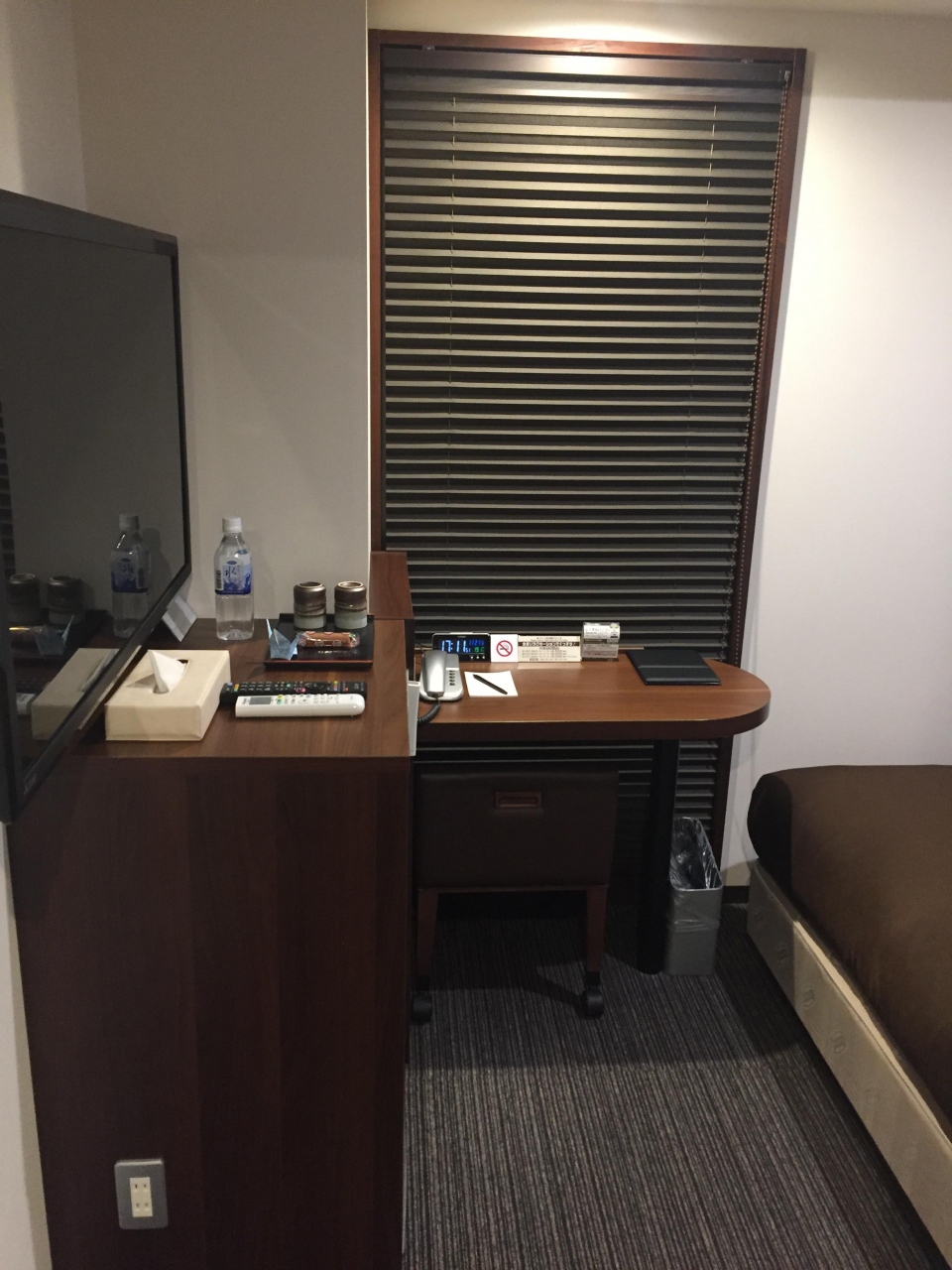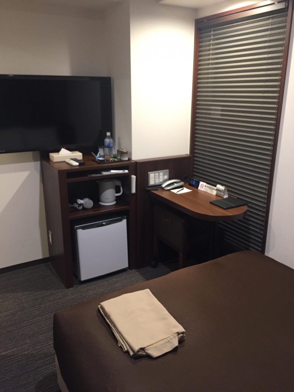 部屋はビジネスホテルの中でも少し狭く感じました。
