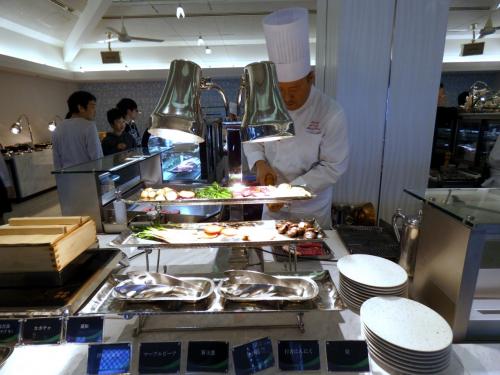 鉄板ブッフェと銘打って、魚介や肉類を選択して、鉄板で焼きあげてテーブルまで持って来てくれるシステムですが、バイキングはバイキングです。