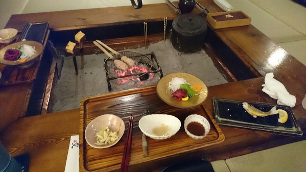 囲炉裏での夕食となります。
