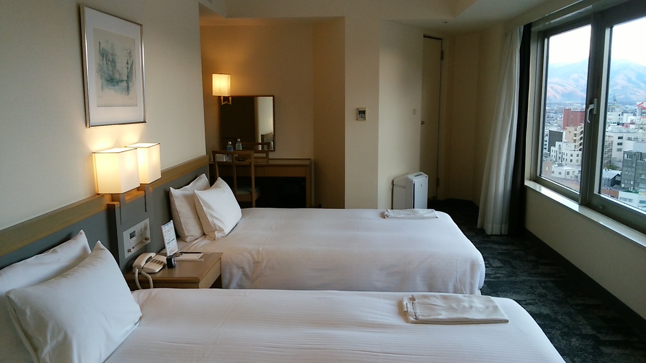 コーナーツインのハイフロアにアサインされたので眺望は開けてよかったです。朝食は人気でお米に長野の食材も美味しく良かったです。夕食はホテル宿泊者限定の中華を食べましたがリーズナブルで美味しかったです。部屋はデュベスタイルのベッドメイキングに加湿空気清浄機で快適でした。