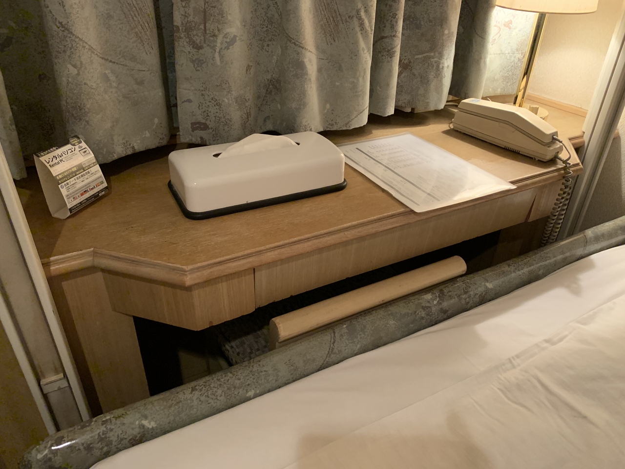 大阪出張で利用しました。最寄りの江坂駅からちょっと歩きます。ホテル横にはコンビニがありとても便利です。施設はちょっと古めですが気になるほどではありません。チェックインして驚いたのは部屋内の椅子がベッドに占拠され動かせない… というか座れません。ベッドを入れた業者のいい加減具合が伺えます(^^;)