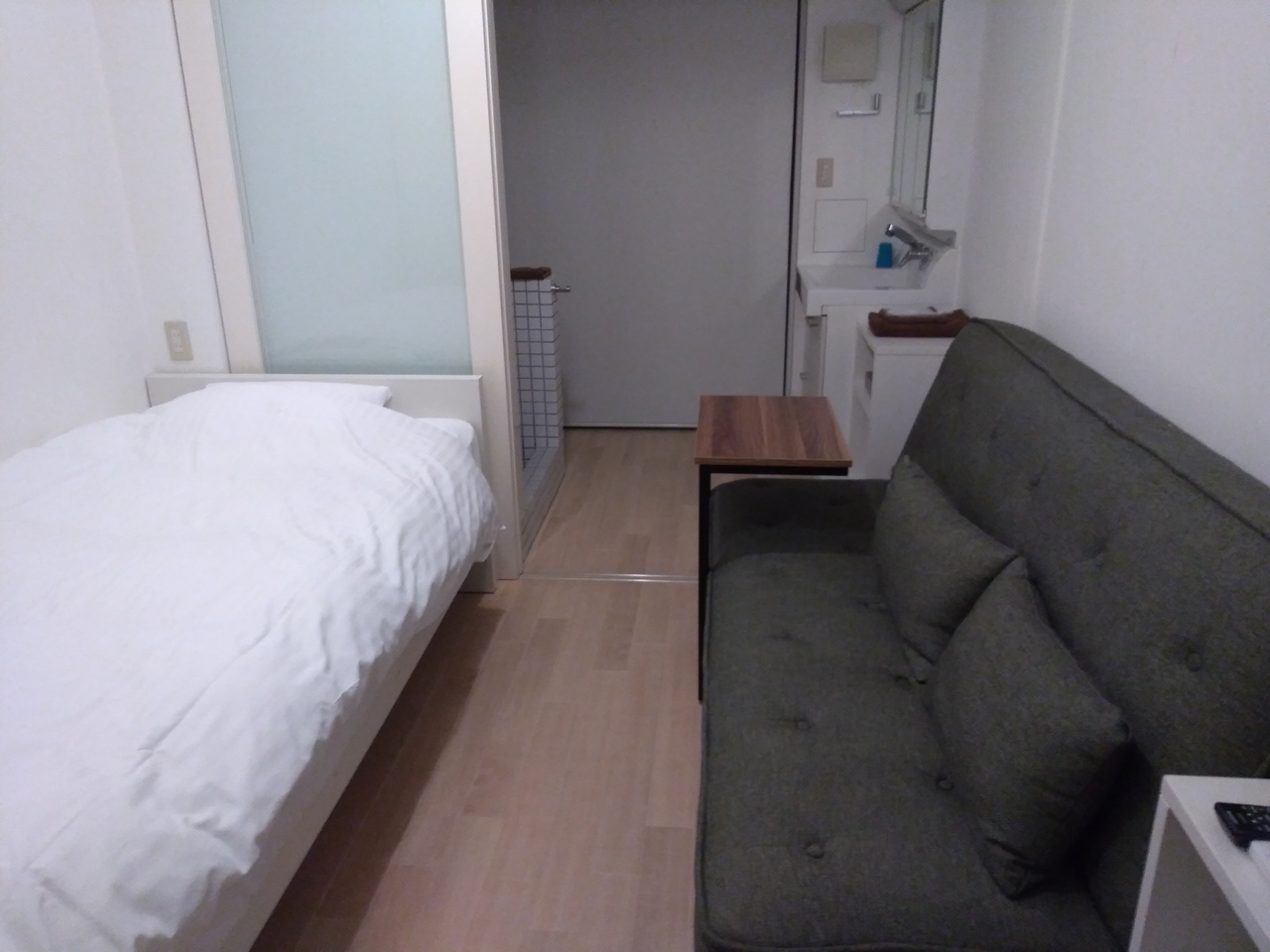 お部屋はシャワー、トイレ、エアコン、テレビ、ベット、ソファー、冷蔵庫があって、ドライヤーやタオル、歯ブラシ、スリッパは置いてありました。