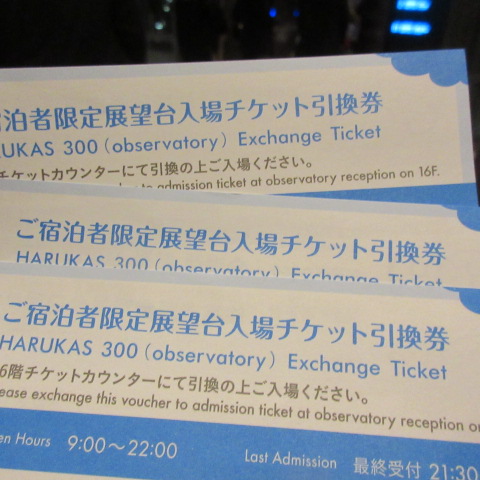 一泊で夜と朝のハルカス展望台入場が無料、とってもお得。