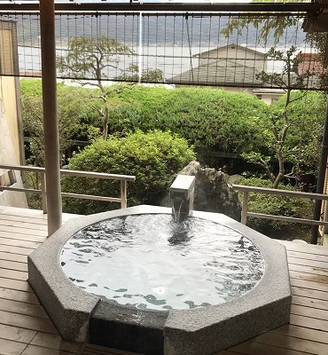 露天風呂付き客室に宿泊しました。眺めは最高で、お湯はややぬるめが幸いしてゆっくり何度も浸かることができました。外観がやや古びていたので不安になりましたが、館内は清潔に保たれていました。夕食は食事処でいただくので部屋に飲食のニオイが残らないのもよかったです。