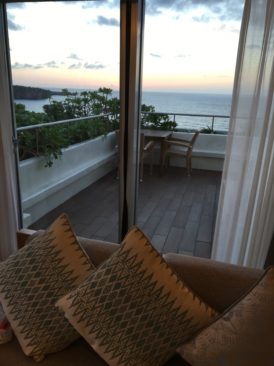 ホテルを選んだ条件は、海を感じられる広いテラス付きの部屋と、クラブラウンジがある、プールが広いホテルという点から、万座を選びました。