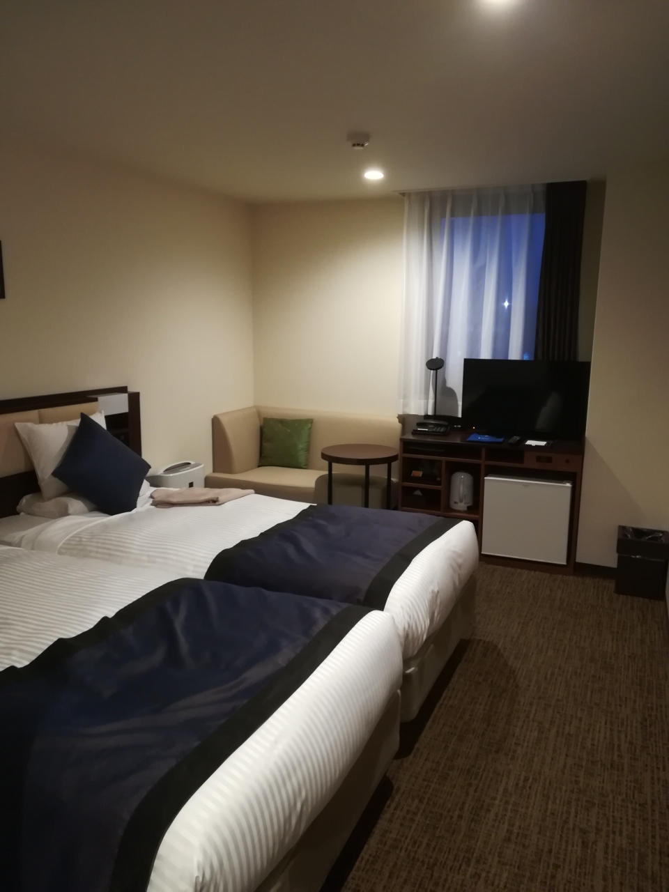 改装してまだ間もないとのことで基本的にきれいでした。フロントのある本館と1Fに居酒屋、2Fに大浴場のある別館に分かれているホテルです。部屋がスタンダードツインだったので広々と利用させていただきました。大浴場には露天風呂もありましたが、確かに外ではありますが完全に囲われていますので音のみ外を体感できます。周りがビルなので仕方ないですが。朝食バイキングもおいしかったです。ただ一つ気になったのはTVとソファーの位置関係ですね。ソファーからTVの側面しか見えませんので自分でTVの向きを変えました(^^;