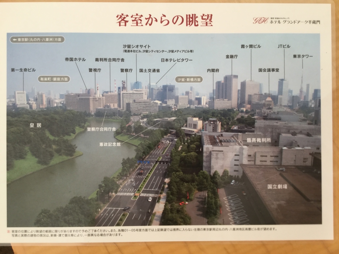部屋からは東京タワーと皇居が見えました