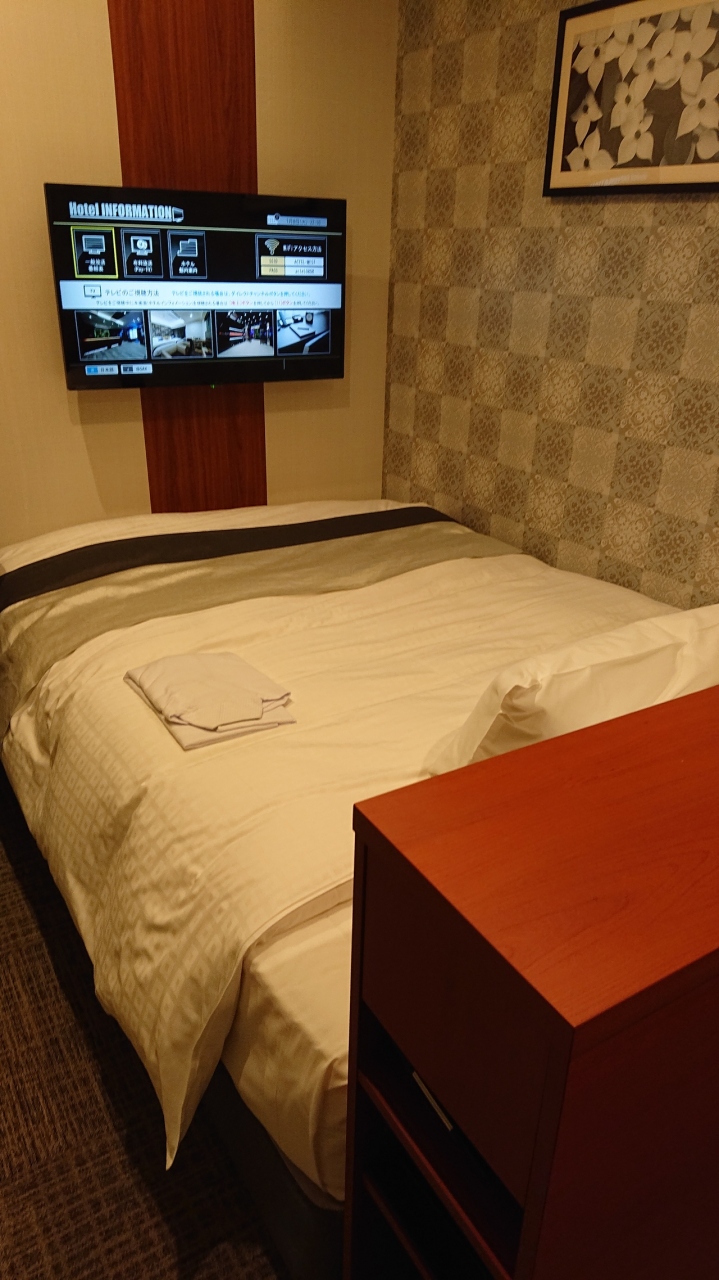 部屋は狭いですが、ベッドは大きめなので快適に睡眠できましたし、栄駅の近くなので利便性も高くコスパ良かったです。