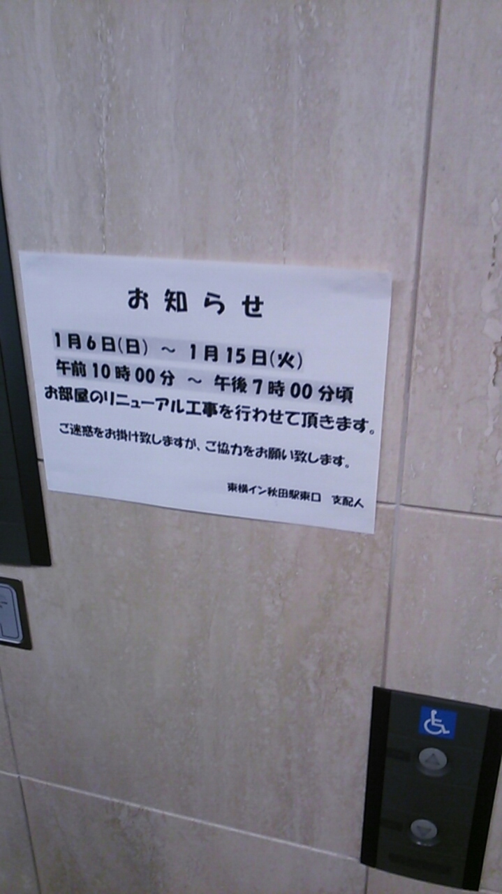 2019年1月12日現在、客室のリニューアルを実施中のようで、館内には2019年1月15日までの10時00分~19時00分の間、工事を行う旨掲示がありました。