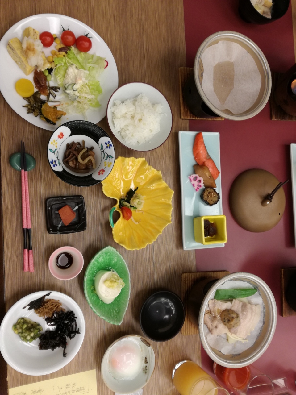 何より料理がとても美味しくて、特に朝食が半分バイキングで、その時にいただいた芋汁がとても美味しかったです。