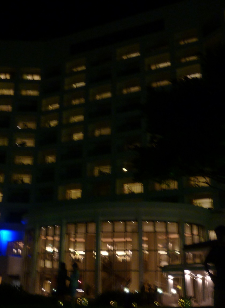 石垣島の市街地から少し離れていますが、夜の自然な部屋の明りでのライトアップでとても目立ちます。離れているためホテル内のレストランは充実していますし、市街へはタクシーで1000円程なので、食事にも遊びにも全く困りません。