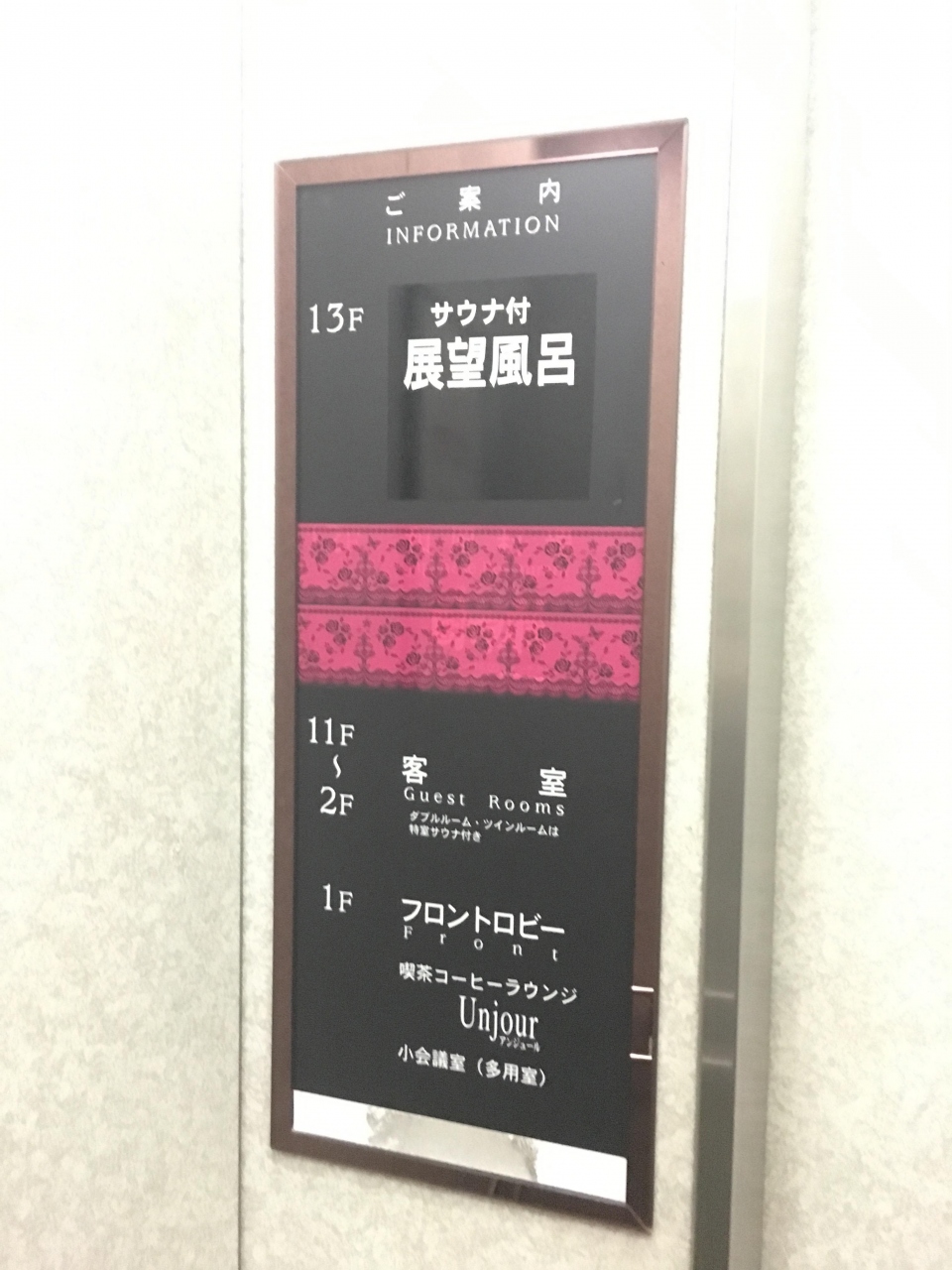 高知の中心地にあるホテルのうちのひとつです。高知駅からもひろめ市場からもアクセスは良いです。こちらの特筆すべきは、13階に大浴場があること。部屋のお風呂はシャワーで終わってしまいますが、このような浴場があるとゆっくりでき大変たすかりました。