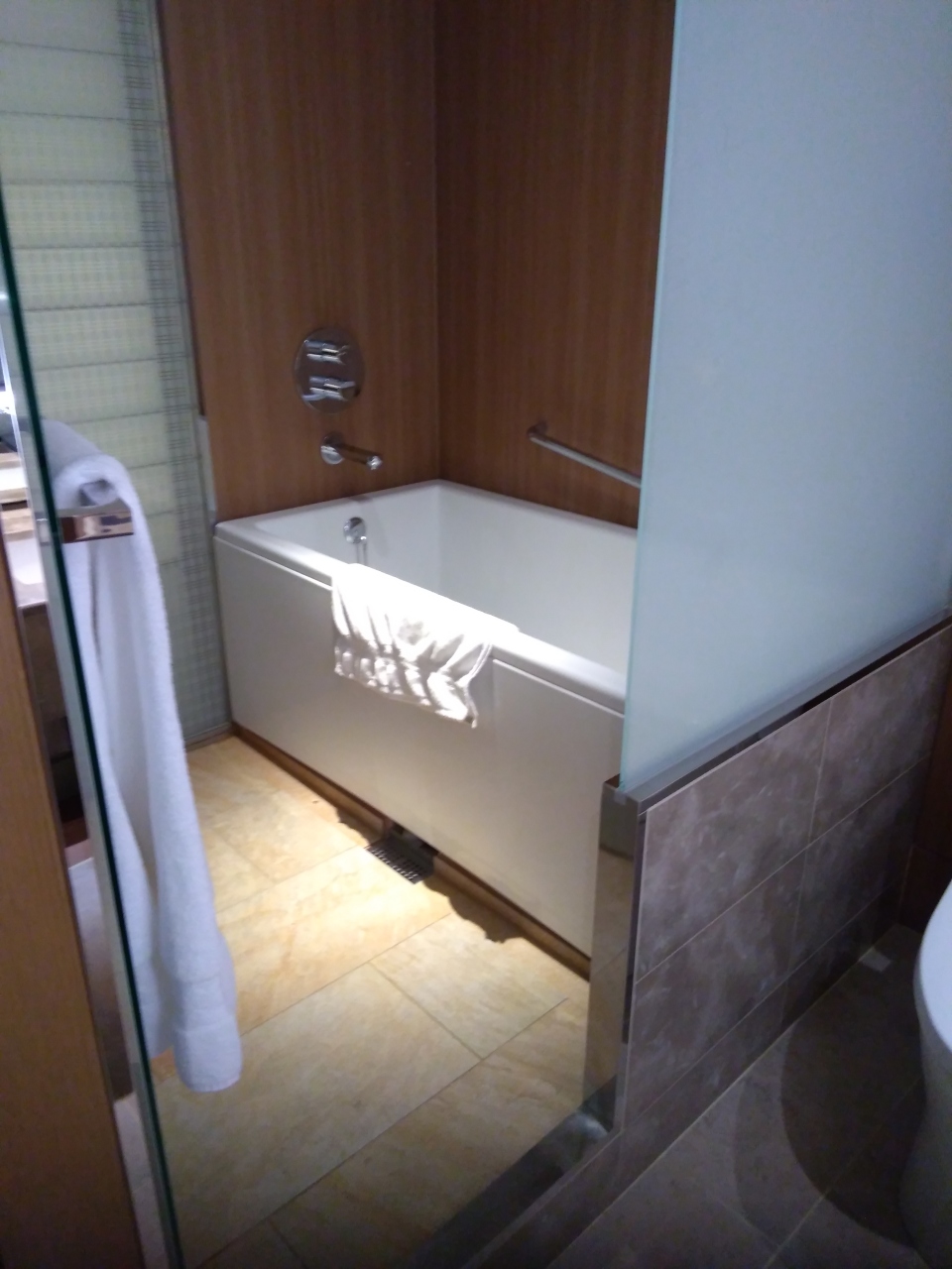 伊丹空港からバスに乗って停車駅からすぐそばがホテルだったのでとても立地がよく、スタッフのサービスも良かったです。部屋もグレードアップされて部屋に和菓子が置いてありました。ただバスルームの湯船がとても深いので、お湯を溜めるのにとても時間がかかりました。