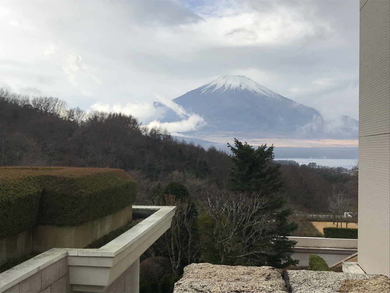 エクシブ山中湖さんへ。この日はあいにくの天気で、富士山はずっと雲に覆われたまま。翌日も曇り空の予報でしたので、せっかくここまで来たのに…と諦めていたところ、目の前に広がる富士山が!とってもいいロケーションで、夏には避暑地にもなるのでおススメです。