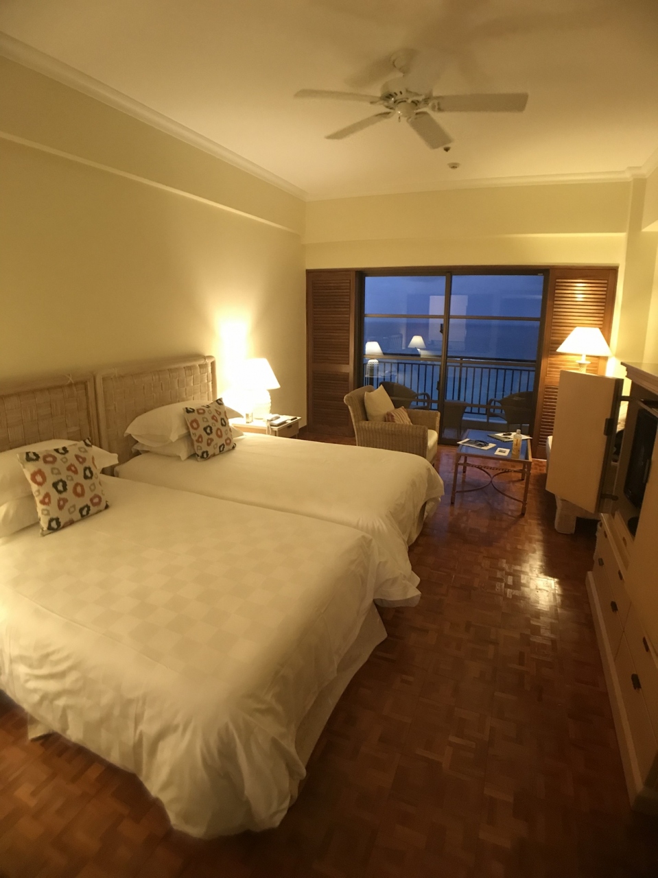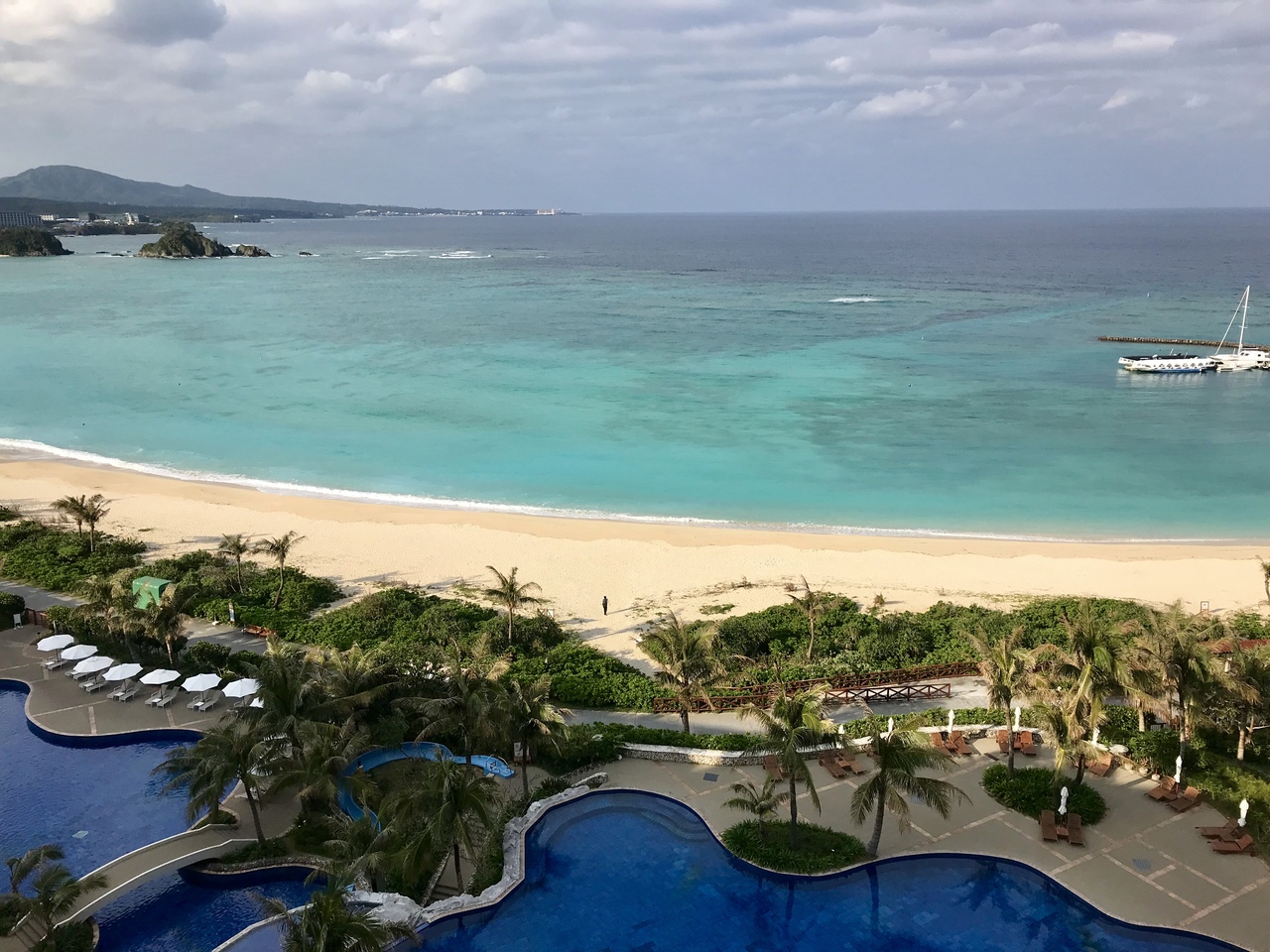 客室はデラックスナチュラルオーシャンビューでしたが、最上階10階に案内していただき、目の前に広がる東シナ海の景色を満喫できました。唯一の難点は、客室のテラスから隣の客室のテラスが丸見えな点くらいでしょうか・・・。