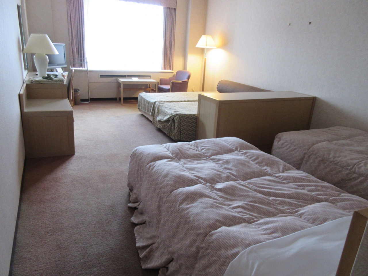 部屋は広いですが、古さは否めなかったです。ツインルームで予約しましたが、4つベッドがありました。2個はソファとして利用するのか、クッションが置いてありました。