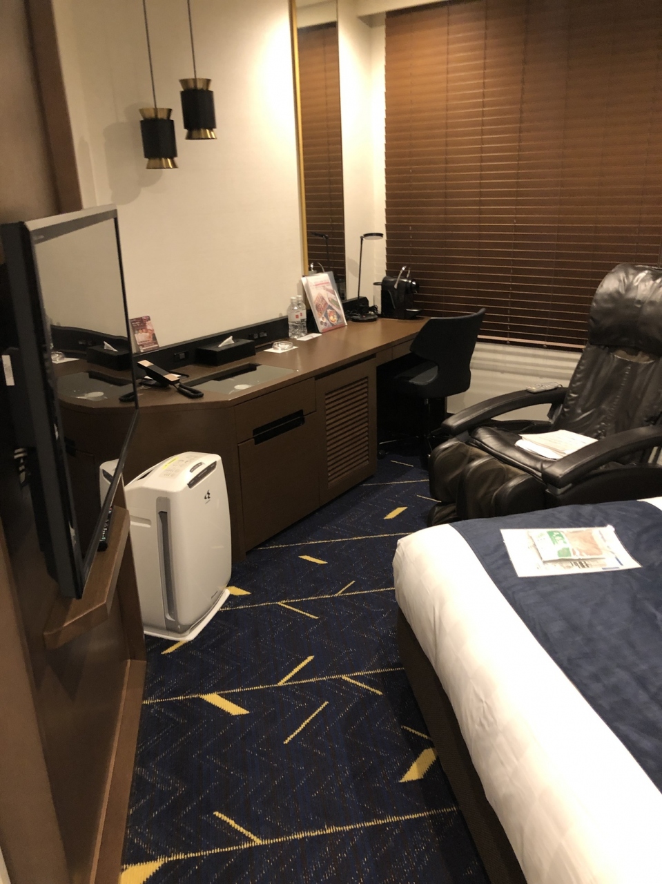 客室はゆったり広くマッサージチェアが