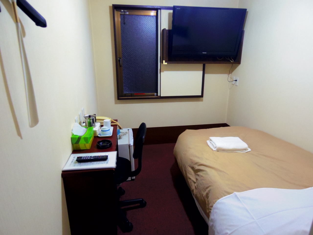 部屋はちょっと狭く冷蔵庫もありませんが特に不満は感じませんでした。