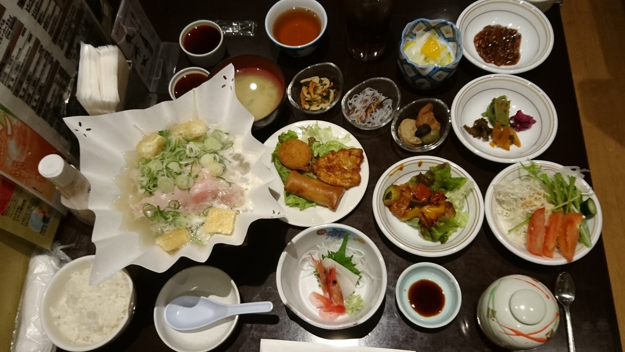 料理プランによってテーブルセットメニューの内容が変わり、自分が行った時の基本プランでは摩周ポークと地元野菜の鍋・お造り2点盛り・酢の物・の3点でした。