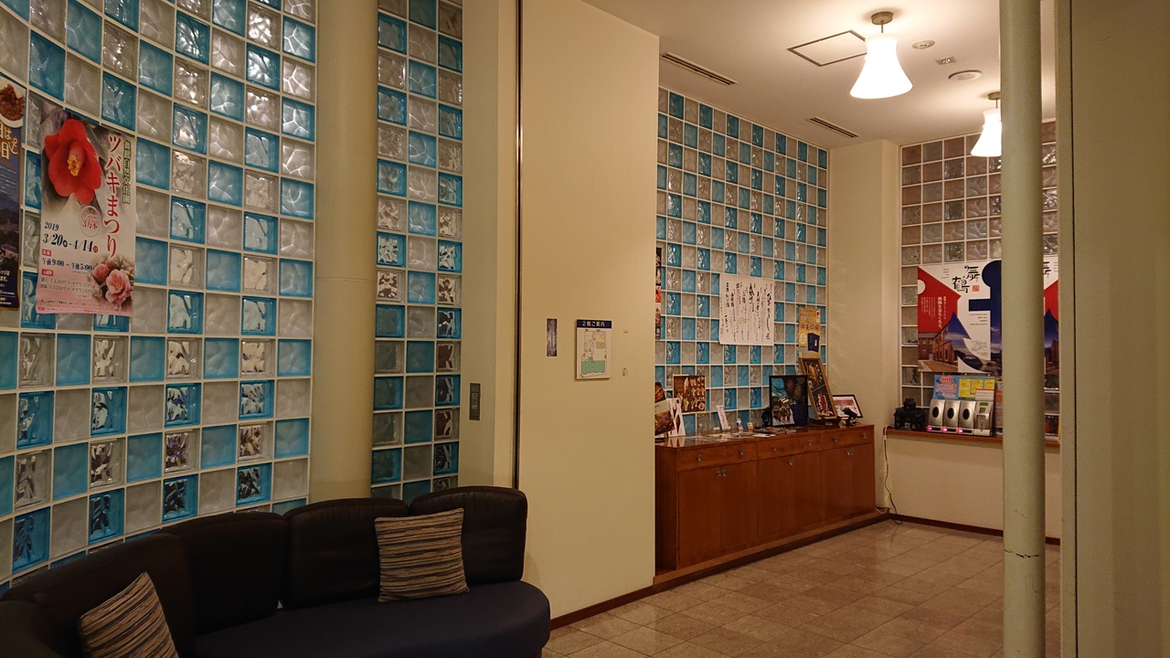 フロントがお洒落です。壁の水色のガラスのタイルが、可愛らしいです。