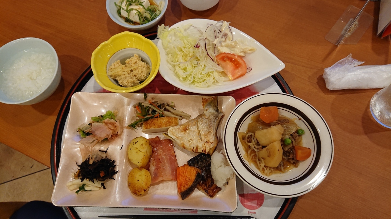朝食は一食1000円。バイキングで、舞鶴の地元料理の肉じゃが、焼き魚等を堪能出来ます。