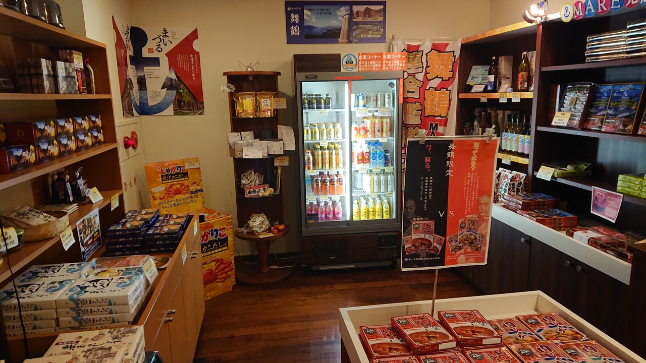 売店は、お土産の品揃えが充実しています。舞鶴のお酒、海軍カレー、肉じゃが、お菓子等、選ぶのに悩んでしまうほど。