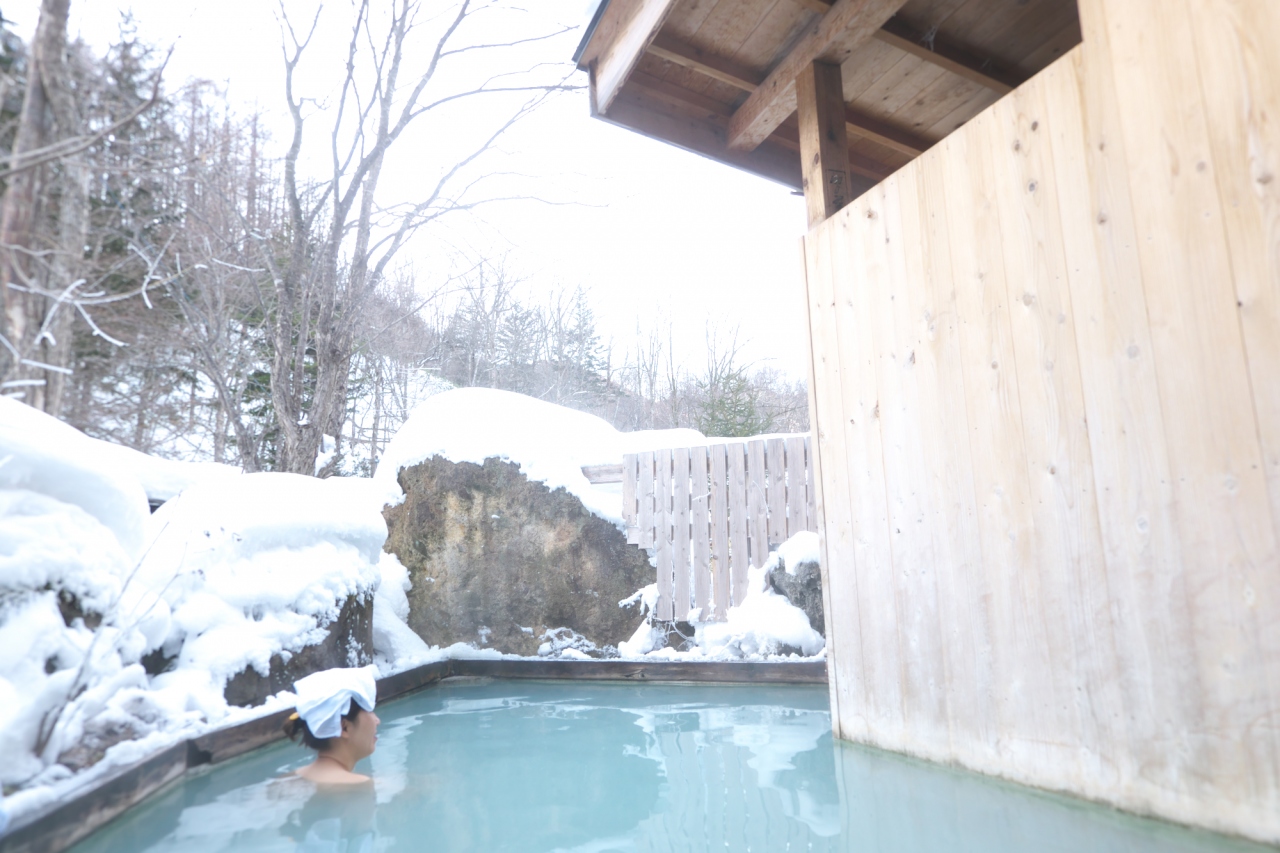 一覧を見る厳冬なのに快適なぬる湯露天を夫婦一緒に楽しめるコンパクトな温泉旅館