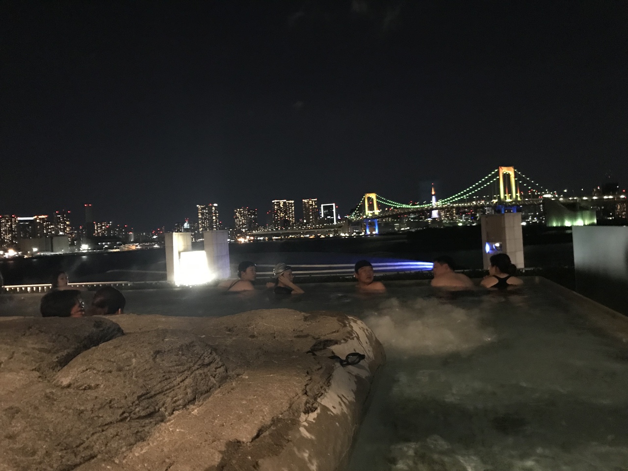 スパ庵 TOKYOはヒルトンお台場を利用したら必ず利用すこともお勧め。プールは広く、何より屋外にあるジェットバスは気持ちよく、何より眺めが最高!