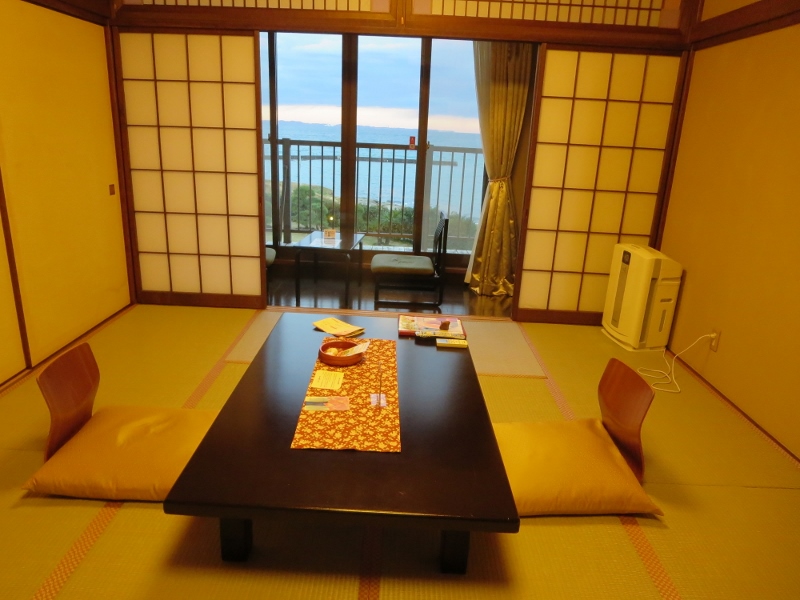 泊まったのは海が見える部屋で、リニューアルしたようで広くてきれいでした。大浴場はそれほど広くはないけれど露天風呂が気持ち良かったです。食事は期待以上で、いけすにはヒラメ等がいて、新鮮な刺身は種類が多く食べ応えがありました。夏は海水浴客もいるのでしょうが、冬なので落ち着いた感じだったようです。