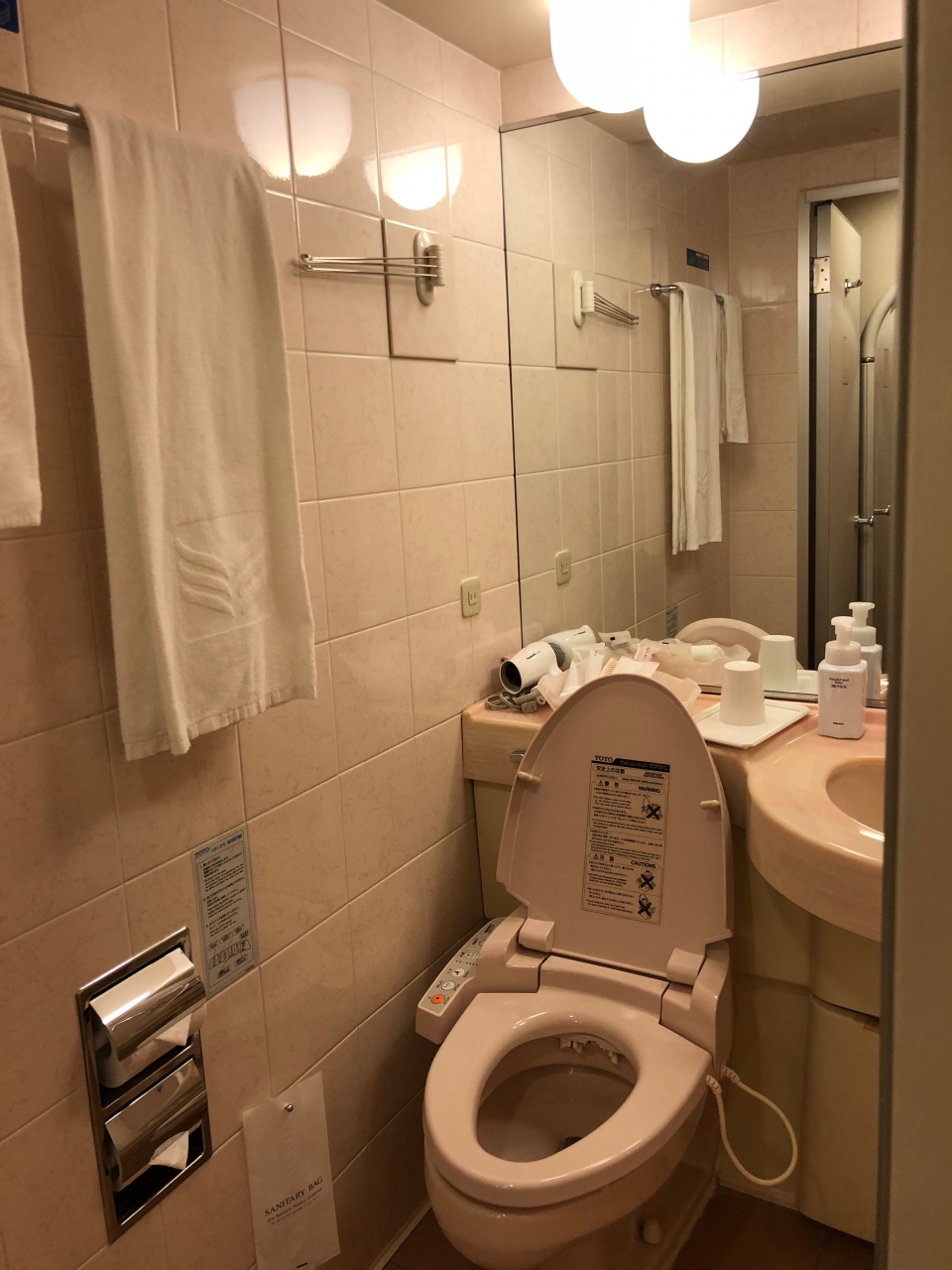 標準的な調度品でしたが鏡が大きい印象でした。トイレは温水便座でしたが乾燥機能のないタイプでした。