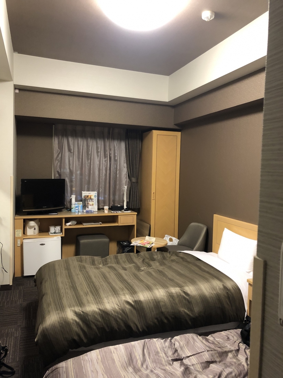 部屋の広さは普通です。このホテルの魅力は駅チカの他に、大浴場と朝食だと思います。