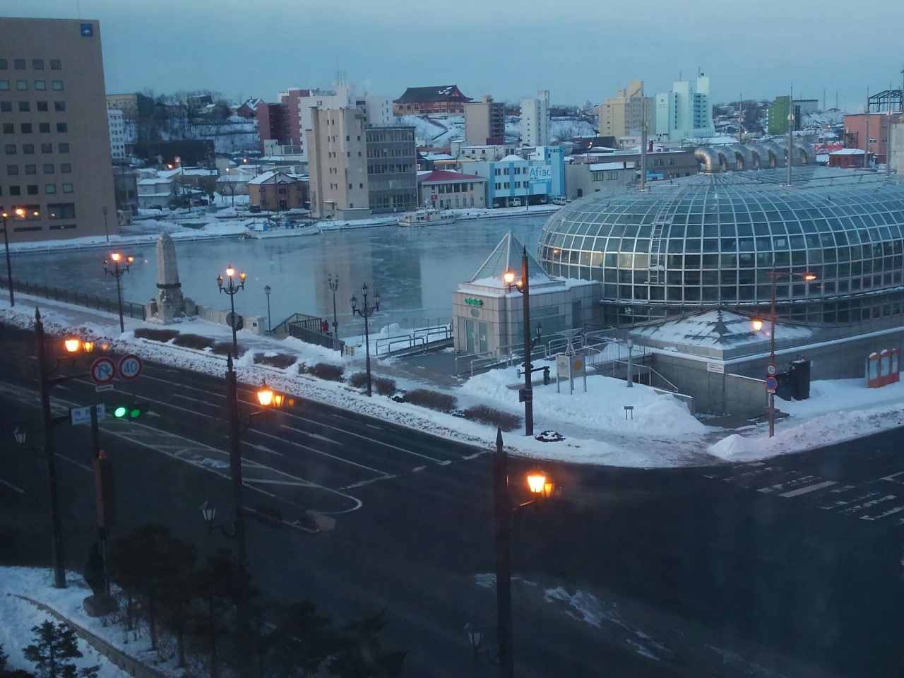 目の前に幣舞橋があり、夕景を見物するには非常に便利なロケーションです。また、ホテルの背後には釧路の繁華街が広がっており、夕食をとるにも便利。もっとも宿泊したのが日曜夜でしたので、選択肢はかなり限られてしまいましたが。この宿を選んだのは大浴場の存在があったためだったのですけれど、チェックインの直前に転んでヒザをケガしたために利用せず、実際はどうだったのか不明です。駐車場はホテル裏にあって、面した出入口からロビーに入れるようになっているのですが、階段を上がった先にまた2段ほどの段差があり、蹴つまづいてしまいました。荷物があるとどうしても注意が疎かになるもので…お気をつけください。女性浴場は暗証番号を入力して入室するようになっており、チェックイン時に暗証番号が渡されます。