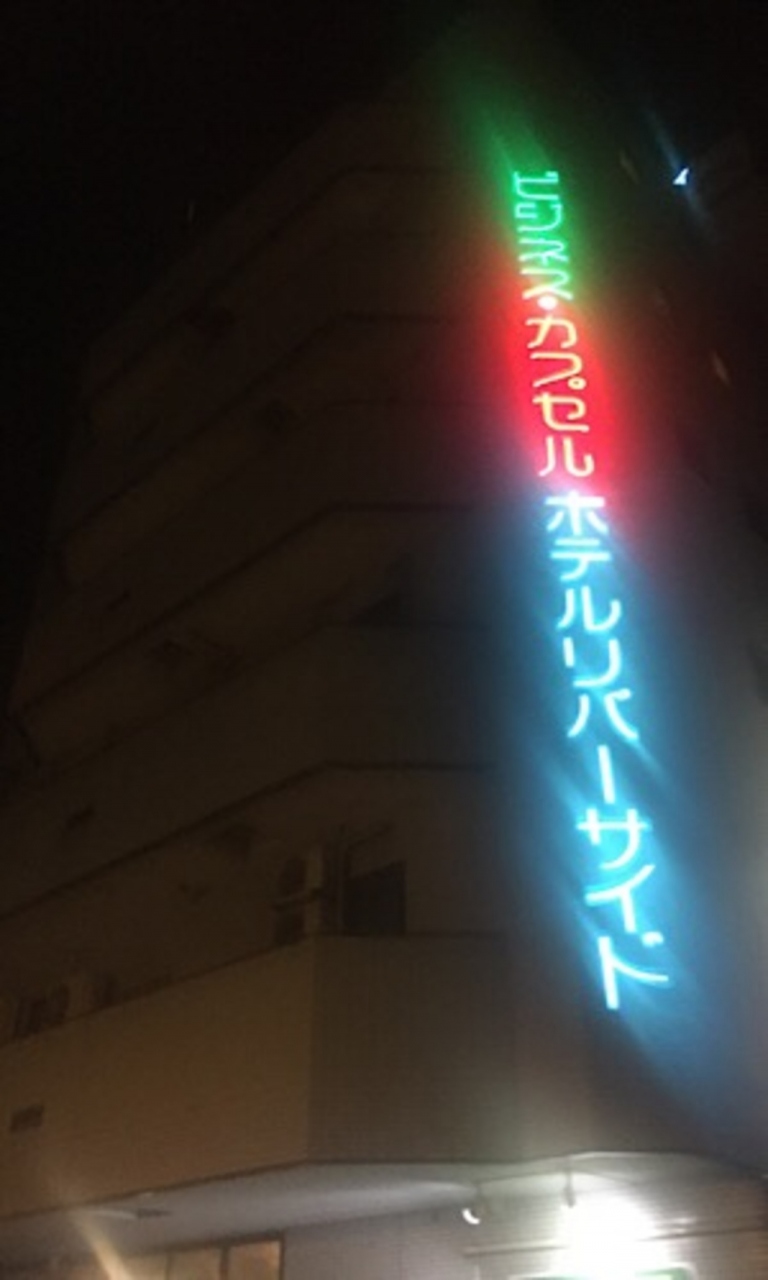岡山駅からは徒歩十五分ほどの場所にある西川緑道沿いのカプセルホテルです。