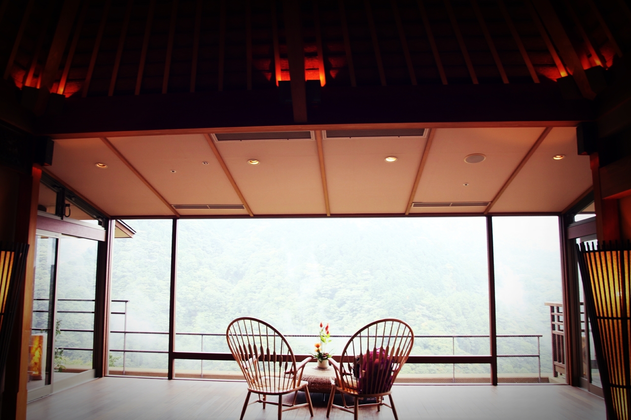 箱根登山鉄道の宮ノ下駅から歩いて少しのところにある宿です。箱根で最も予約のとれない宿として有名ですが、その理由はロビーから臨めるその眺望です。高台にあるので箱根の山の木々や空を見下ろすような構造になっています。ただ、高級宿のはずなのに接客やお料理の質は残念な結果でした。予約が取りづらいとのことで期待値が上がってしまったためかもしれませんが、それにしてもがっかりな対応が多く、ぜひ改善してくれることを祈ります。