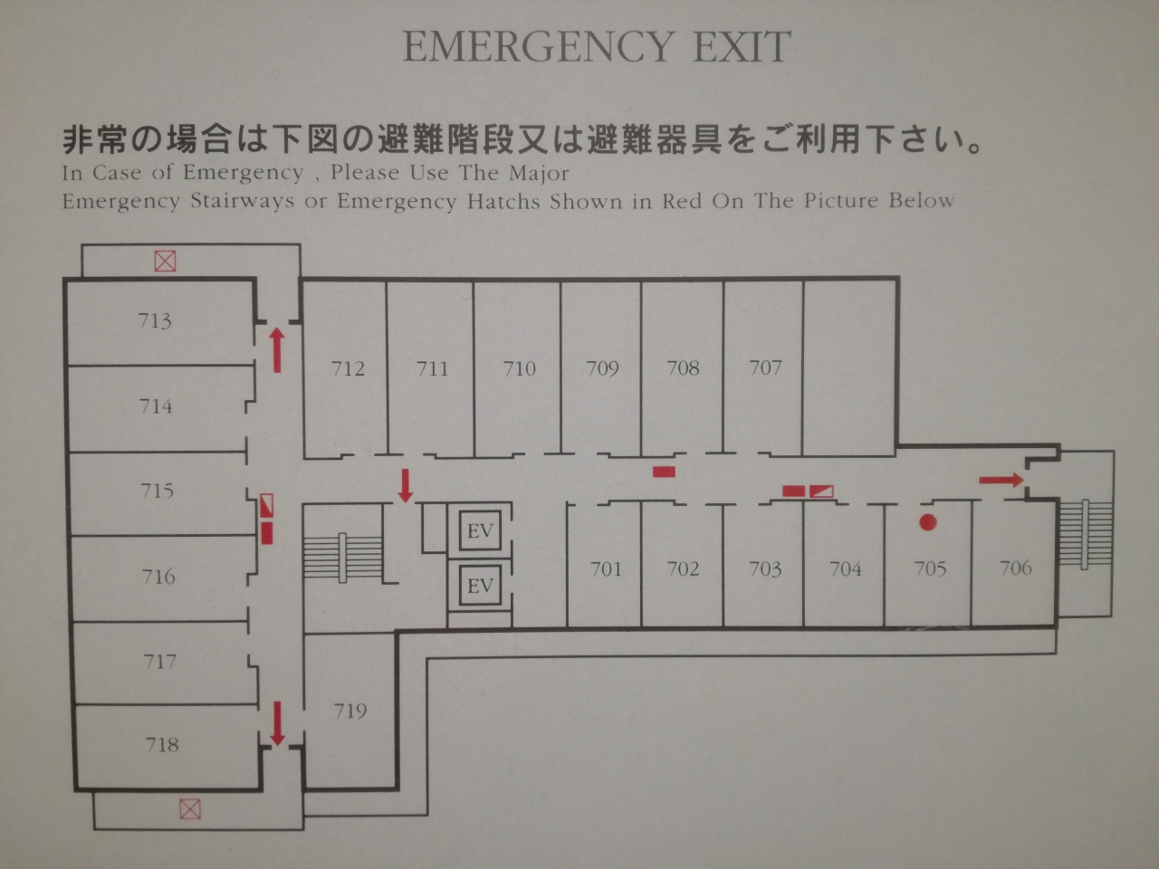 投稿写真5枚目は避難案内ですが、下段がセミダブルの部屋で上段の奥行きのある部屋がツインルームの部屋です。1室を2人利用だとセミダブルベッドは幅が狭すぎるためツインルームをお薦めします。