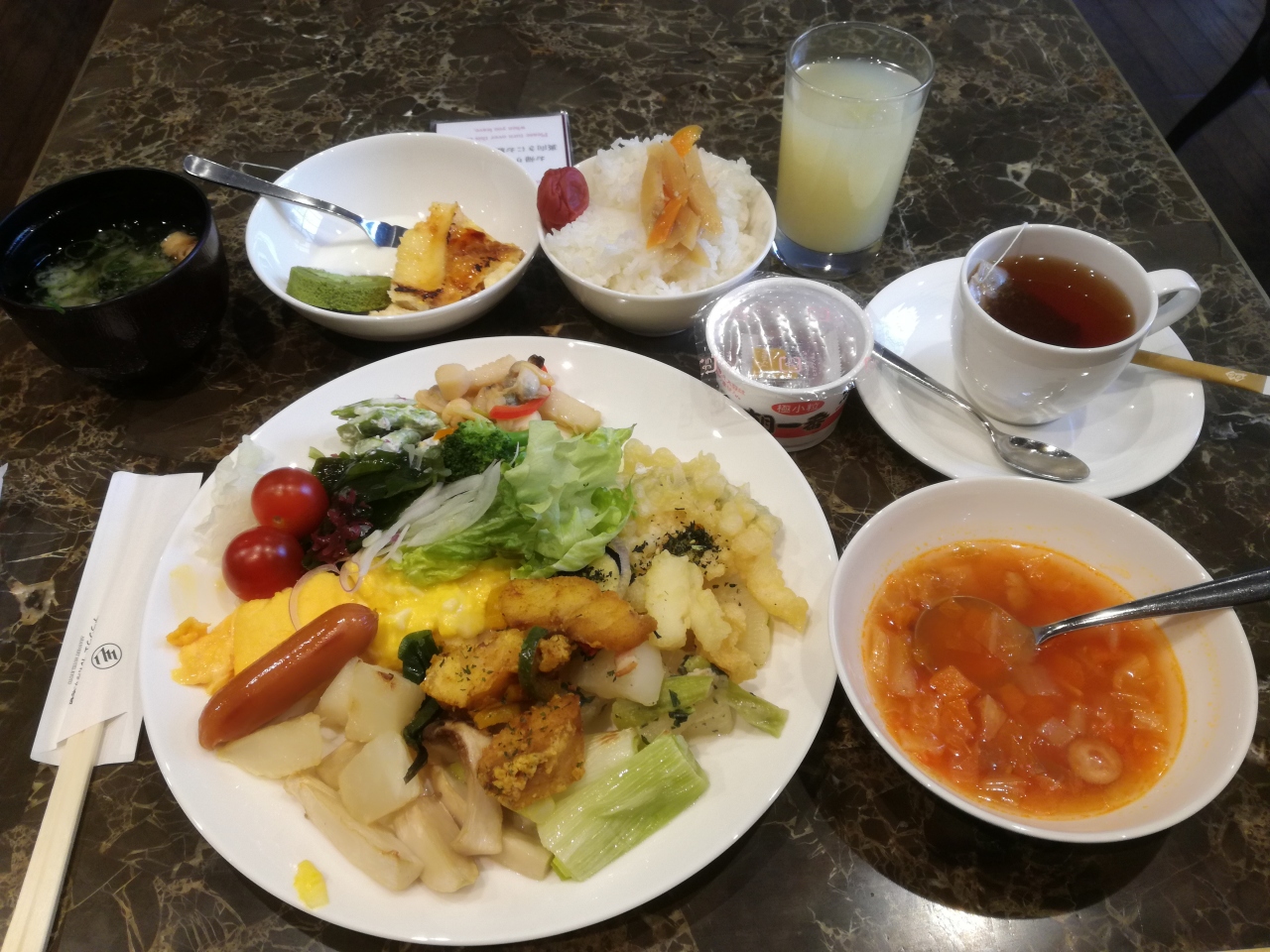 朝食は9時30分までで非常に種類が多く、会場も広々していました。ビジネスホテルのように、単に食べるのではなく、ゆったり朝食を楽しめました。