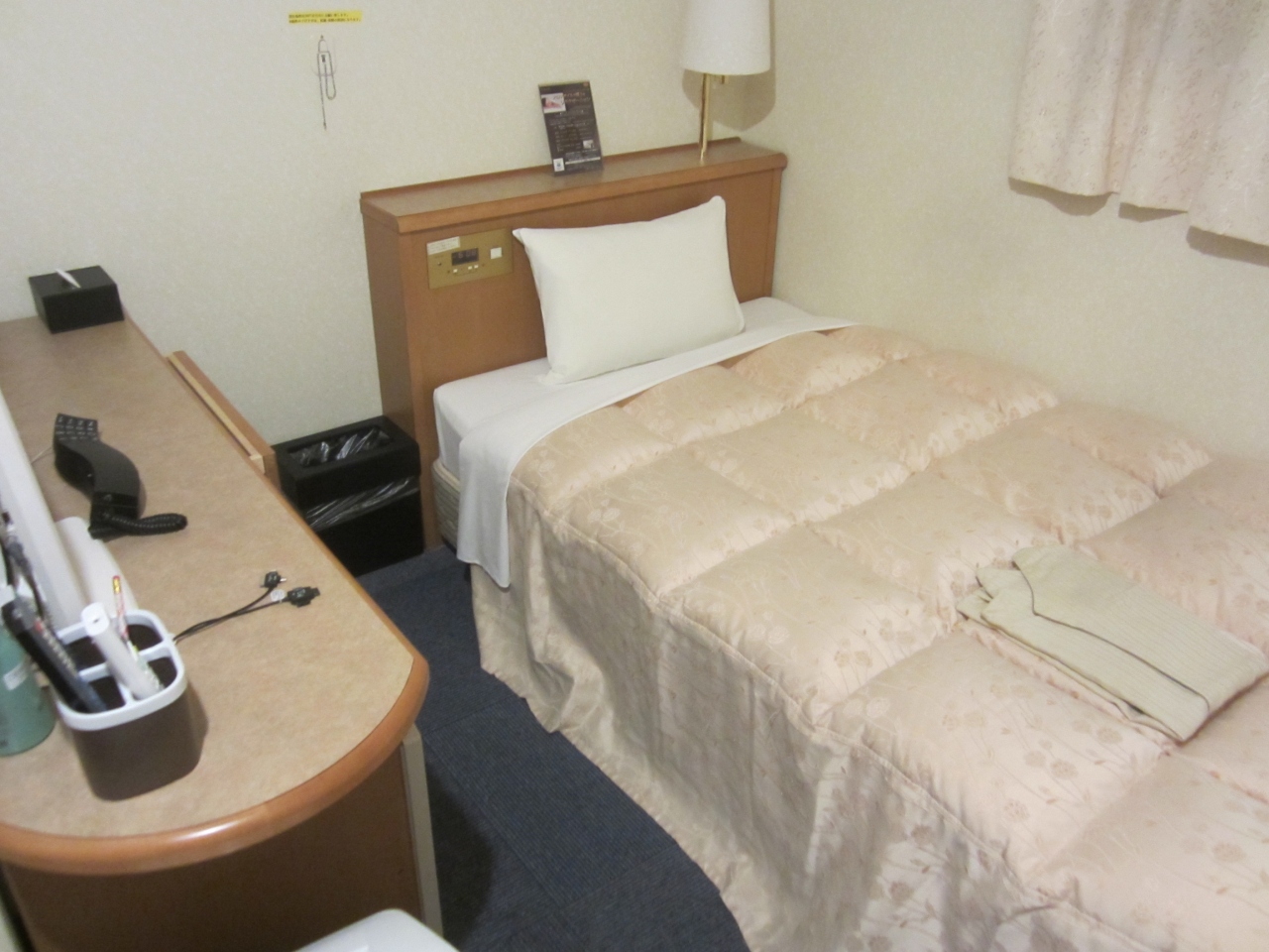 部屋もきれいで広く、携帯電話の充電コードが設置してあるなど、設備も充実していた。