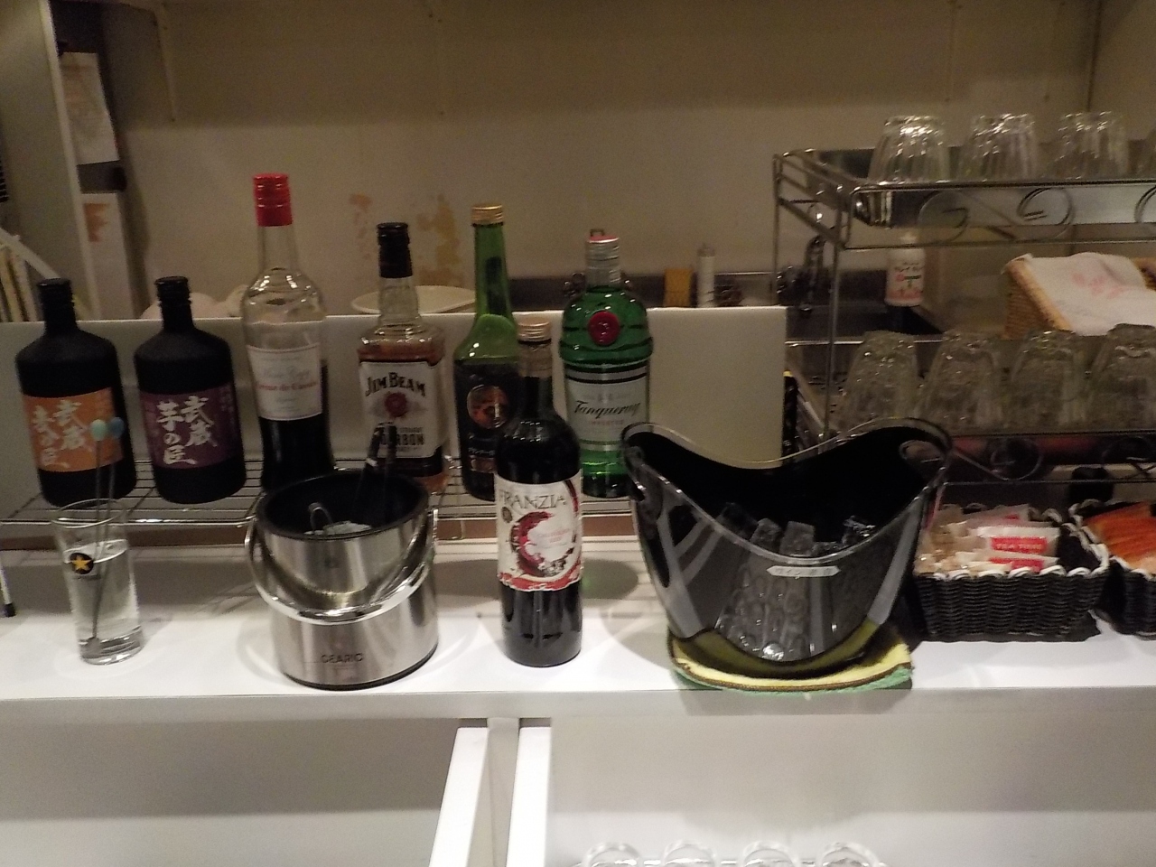 一番近い出口は階段なので、横断道路を渡らないといけませんが、エスカレーターがあります。コーヒー、お茶スティック、アメニティは、フロントに置いてあり、ご自由に持っていけます。18時から20時までウエルカムドリンクがあり、日本酒、ビール、ワイン、ソフトドリンク、おつまみがあります。一人2杯まで。監視はしてませんが。