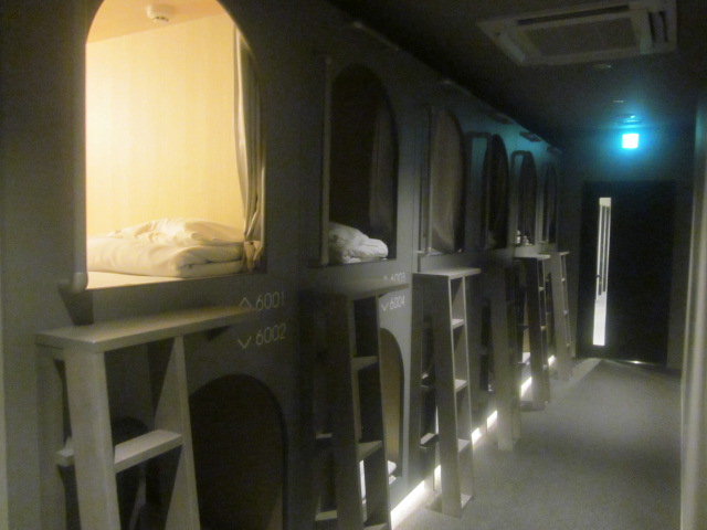 どうやら2018年9月にオープンしたばかりの新しいキャビンホテルのようで、このタイプの宿は全国津々浦々、最近増えているようですね。