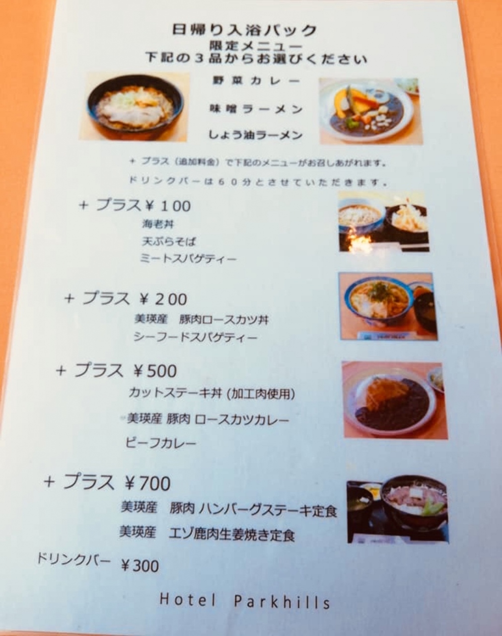 日帰り温泉&ランチで1200円ですが食べるもの他のも選べます