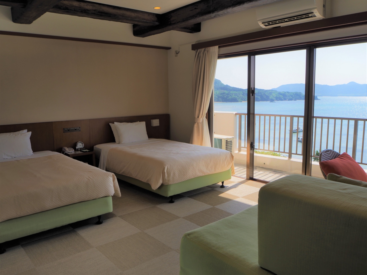 てぃーだ館5階のお部屋からの眺望が素晴らしくて本当に癒されました。リニューアル済みの部屋はとてもきれいで広くて快適でした。セパレートのトイレとお風呂場も使い勝手がよかったです。今回は旅行会社のタイムセールで非常に安く泊まることができて大満足でした。朝食バイキングもよかったです。夕食はレストランでアラカルトでゴーヤチャンプルセットをいただきました。美味しかったです。ただ、夜はレストランスタッフの数が足りていないように見えました。料理はすぐに来ましたが、席への案内や会計の待ち時間は長かったです。お水が来なくて尋ねたら、ビュッフェ台から自分で取ってくるように不機嫌そうに言われました。それなら注文時に教えてほしいです。あとは、部屋にコーヒーのドリップパックがあれば嬉しいな~