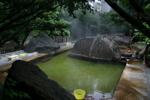 こちらの露天風呂は大きな石より手前が男性用、奥が女性用と気持ち程度別れたつくりになっている。