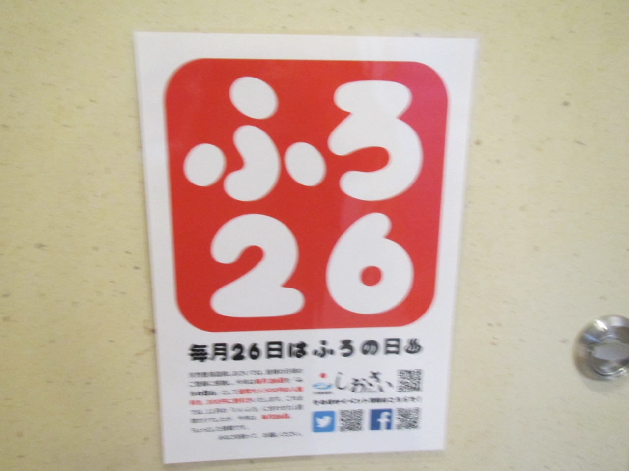 風呂は、毎月26日に入館料が¥500円から豊浦町在住の高齢者と同様の¥200円に割引されます。
