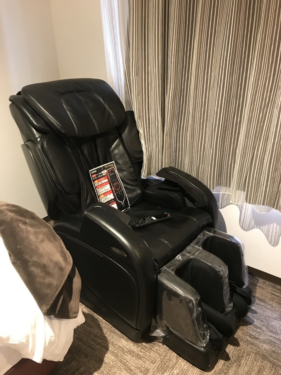 予約していたダブルの部屋からグレードアップされており、部屋にはマッサージ機がありました。